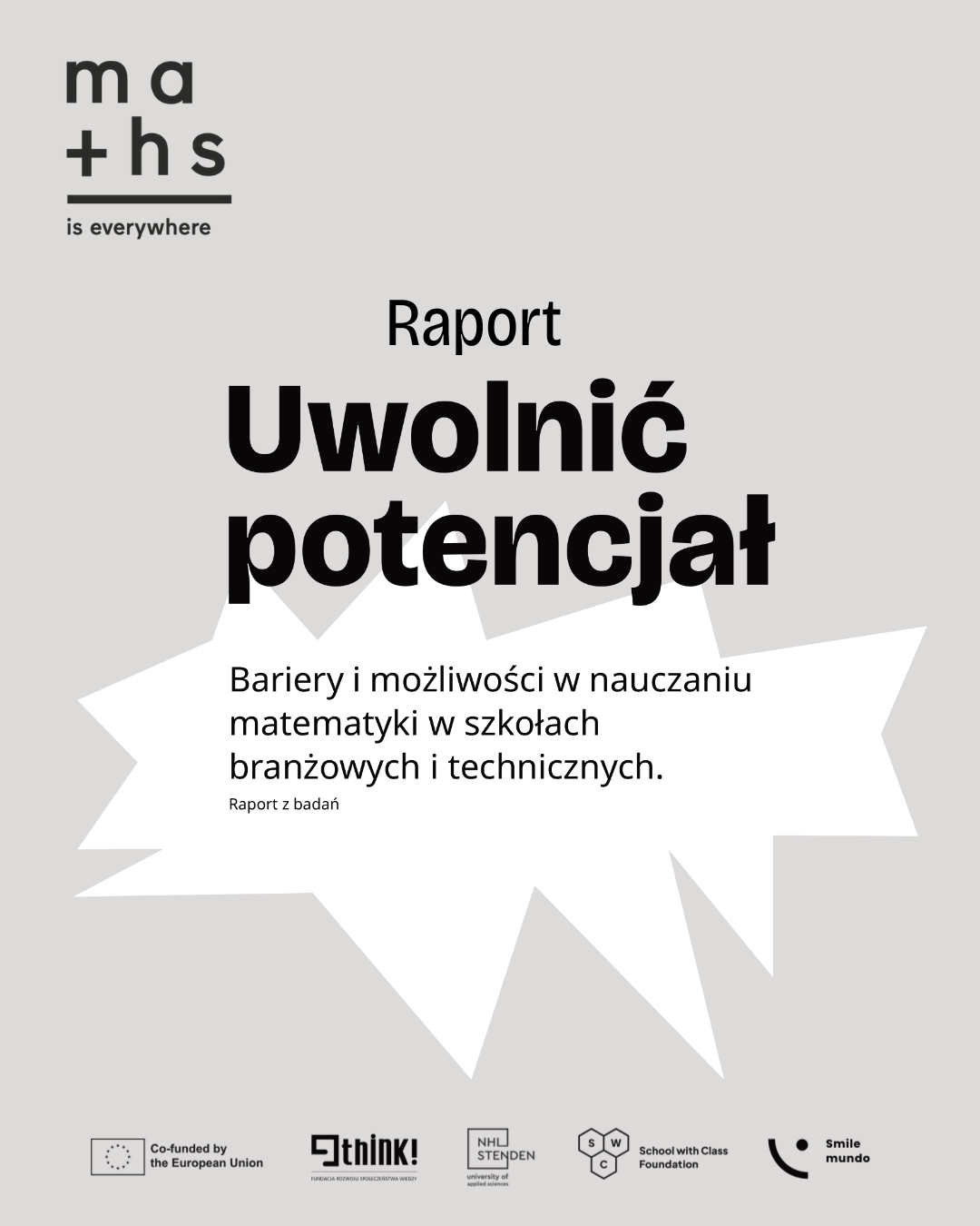 Raport Uwolnić potencjał! … powstał w ramach projektu Erasmus+ Matematyka jest wszędzie. Wartość dodana – poziom wyżej! (strona projektu). Jego celem była diagnoza problemów związanych z nauczaniem matematyki w szkolnictwie zawodowym oraz wskazanie konkretnych rozwiązań możliwych do wdrożenia w praktyce szkolnej. Badanie obejmowało nauczycieli matematyki w trzech krajach UE: Polsce, Hiszpanii i Holandii.