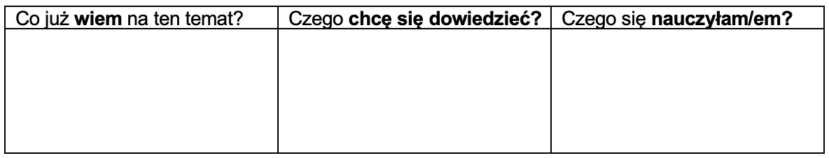 Pierwszą i drugą kolumnę wypełniają uczniowie na początku lekcji, ostatnią pod koniec.