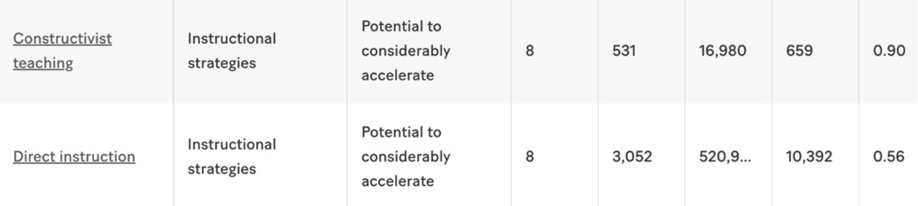 Dowodzenie, że jakaś metoda jest „zawsze i wszędzie” lepsza niż inna często zaliczyć można do jałowych sporów, a nawet edukacyjnej mitologii. Bo to oczywiście zależy od kontekstu i warunków, w jakich została zastosowana. Można zastanawiać się, która ma większy wpływ na nauczanie, sięgając do metaanaliz prof. Hattiego. W tym wypadku, porównując podejście transmisyjne i konstruktywistyczne, wyższy współczynnik ma ta ostatnia (czyli inaczej niż we wspomnianym raporcie). Ale to też zależy. Lepiej relatywizować niż fetyszyzować.